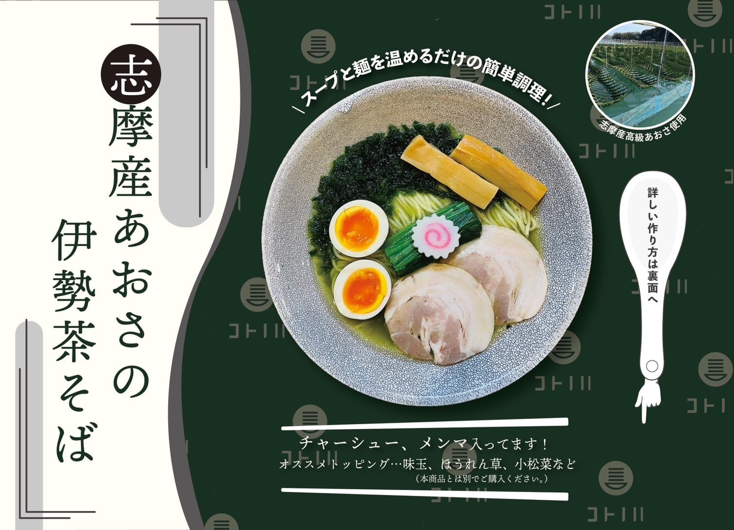 志摩産あおさの伊勢茶そばは、最高級の志摩産あおさを贅沢に使用したそばです。地元で愛される素材をふんだんに使い、独自の製法で作られています。あおさの風味と伊勢茶の風味が楽しめる贅沢な一杯です。
